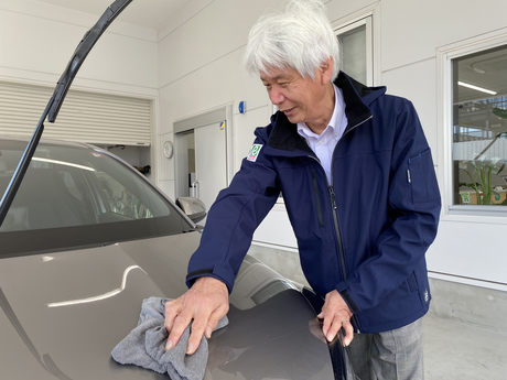 最初は、洗車の仕方などイチから丁寧に教えます。